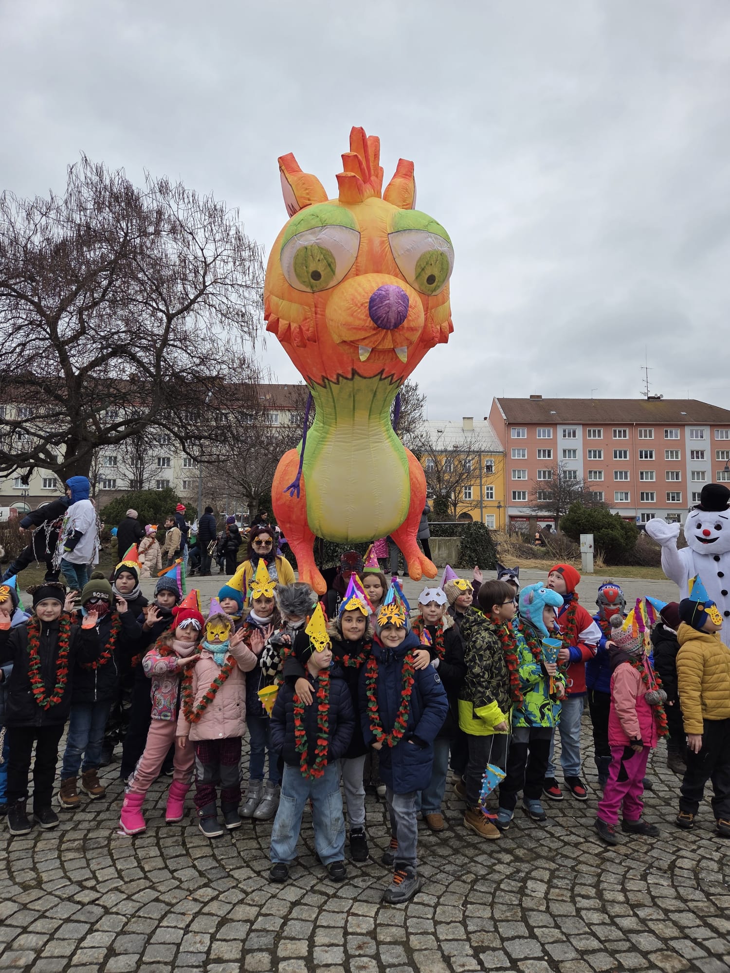 Do masopustních příprav a poté i průvodu se zapojili také naši žáci ze školní družiny.