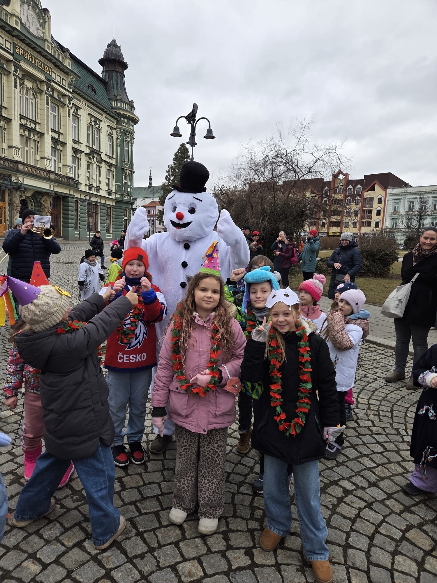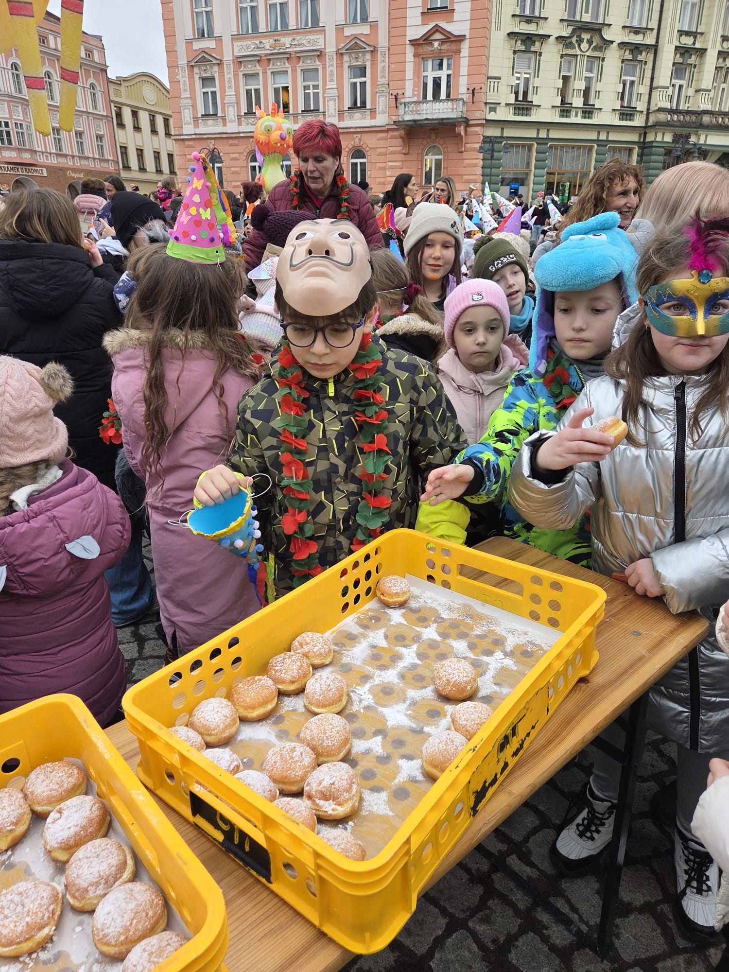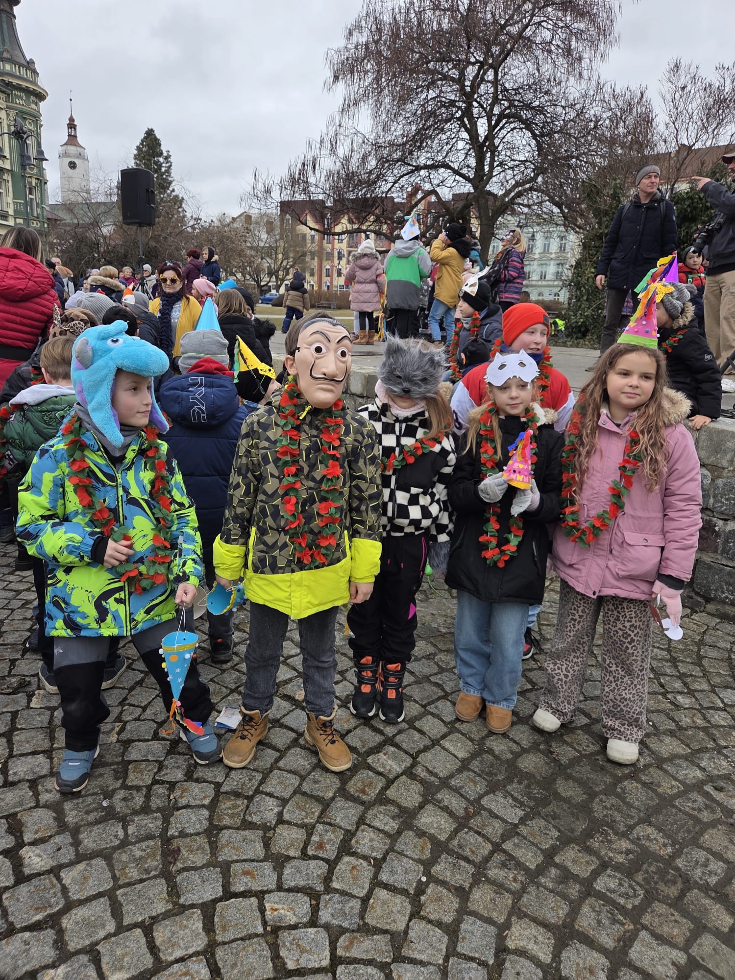 V maskách a karnevalových čepicích se za doprovodu Krnovanky prošli až na náměstí, kde si zatančili a smlsli si na sladkém koblížku.
