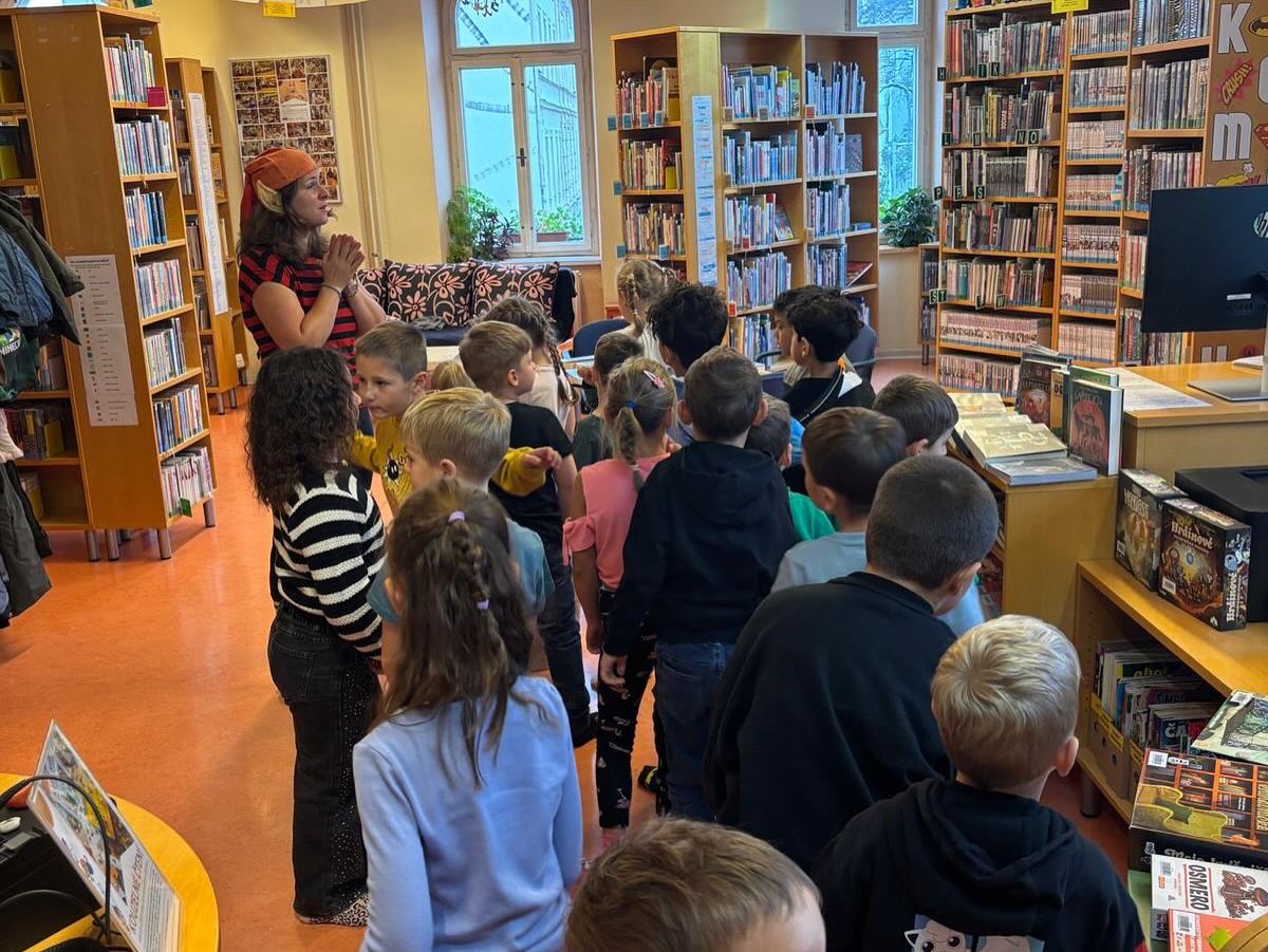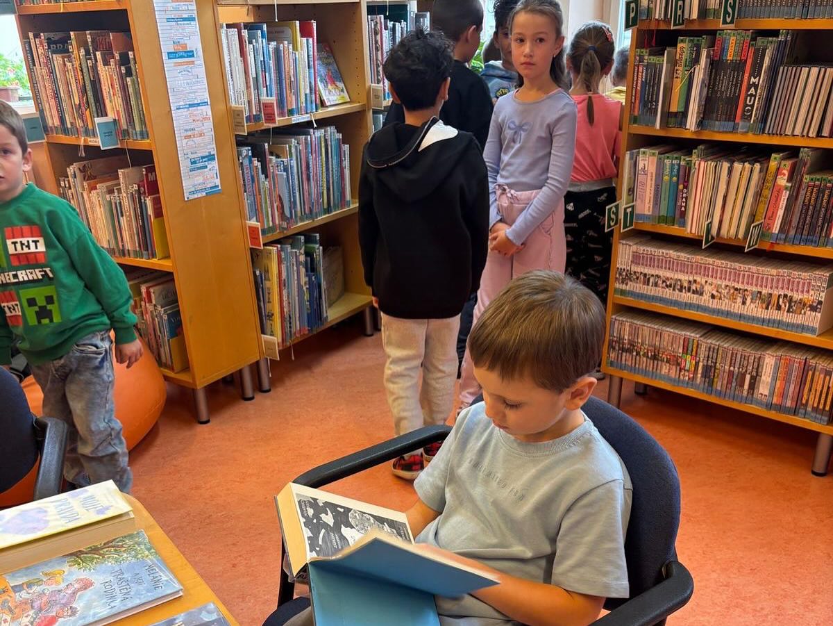 Žáci z prvních tříd navštívili místní knihovnu, kde se dozvěděli mnoho zajímavostí o knihách a jejich vzniku. Paní knihovnice žákům vysvětlila, jak vlastně kniha vzniká, kdo je spisovatel, a také jim objasnila, jak se správně chovat v knihovně a jak zacházet s knihami. Žáci se naučili, jak si knihu půjčit domů pomocí čtenářského průkazu a po přečtení ji včas vrátit.