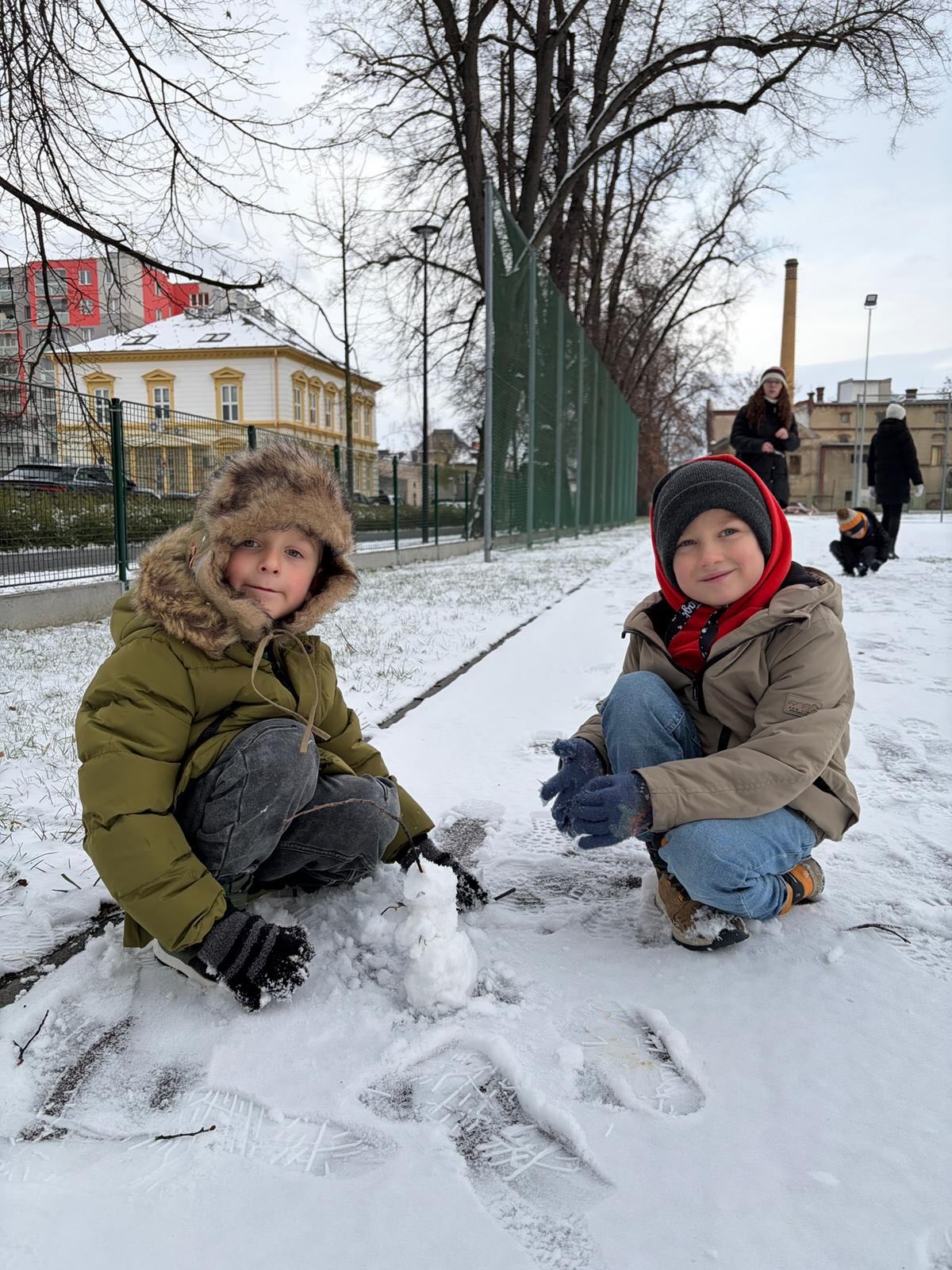 Žáci školní družiny 1. a 3. oddělení si užili první letošní sníh. Radost a stopy byly všude kolem - zima může začít.![]()