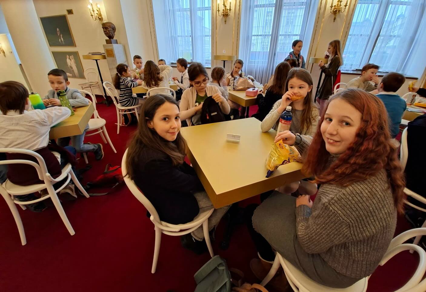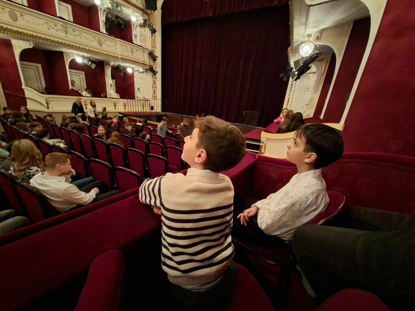 Před představením jsme se občerstvili v divadelním foayer. Představení jsme sledovali také z lóží, což byl pro mnohé žáky velký zážitek – někteří byli v divadle úplně poprvé. Žáky nejvíce překvapilo, že se v baletu nemluví a celý příběh je vyprávěn pouze hudbou a tancem. ![]()