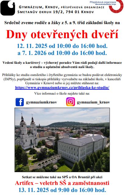 Podrobné informace o krnovských středních školách, nabízených oborech a přijímacích řízeních naleznete zde: